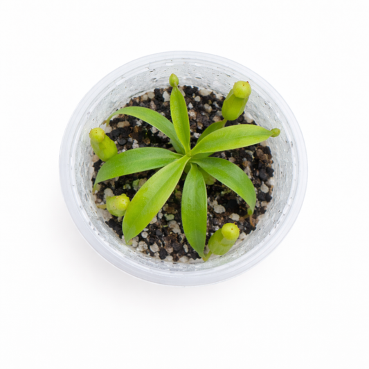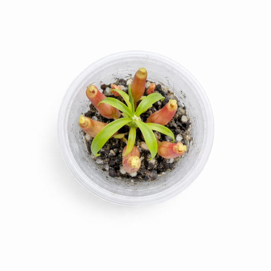 A charming and compact carnivorous plant known for its small, intricately shaped pitchers adorned with striking ridges and translucent windows. Native exclusively to Western Australia, this botanical gem lures insects into its digestive traps, offering both beauty and intrigue to collectors.